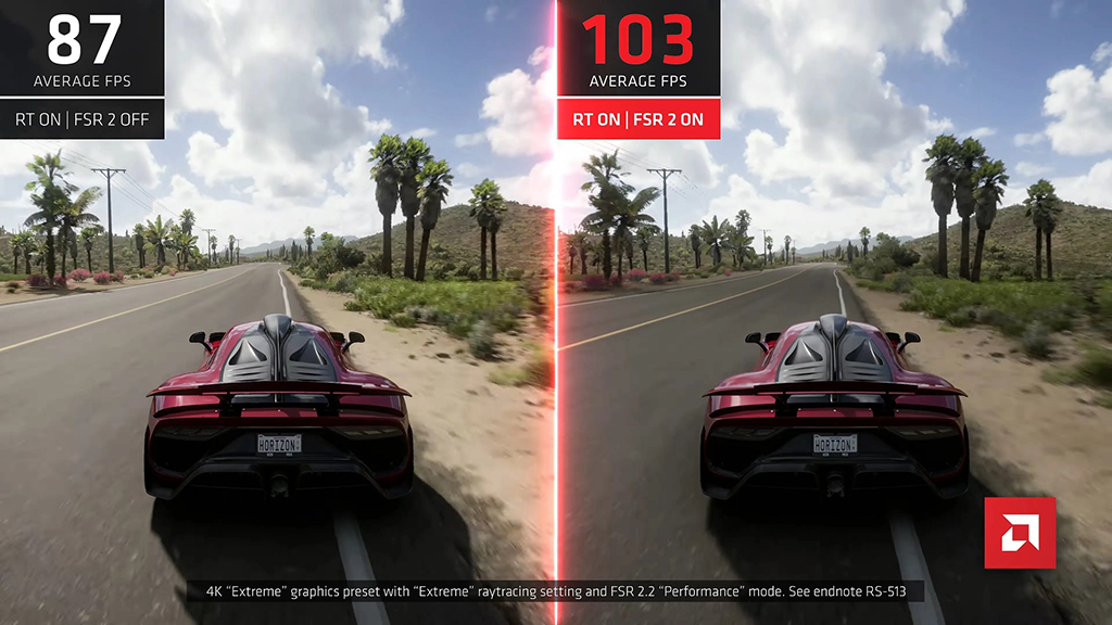 | FSR 4 | 범용 연산 유닛 적용 (타사 GPU 포함) | 범용성을 무기로 한 콘솔 기기 및 UMPC 시장 장악 | 소프트웨어 알고리즘 기반으로 화면 전환 시 화질 손실이 일부 발생 |